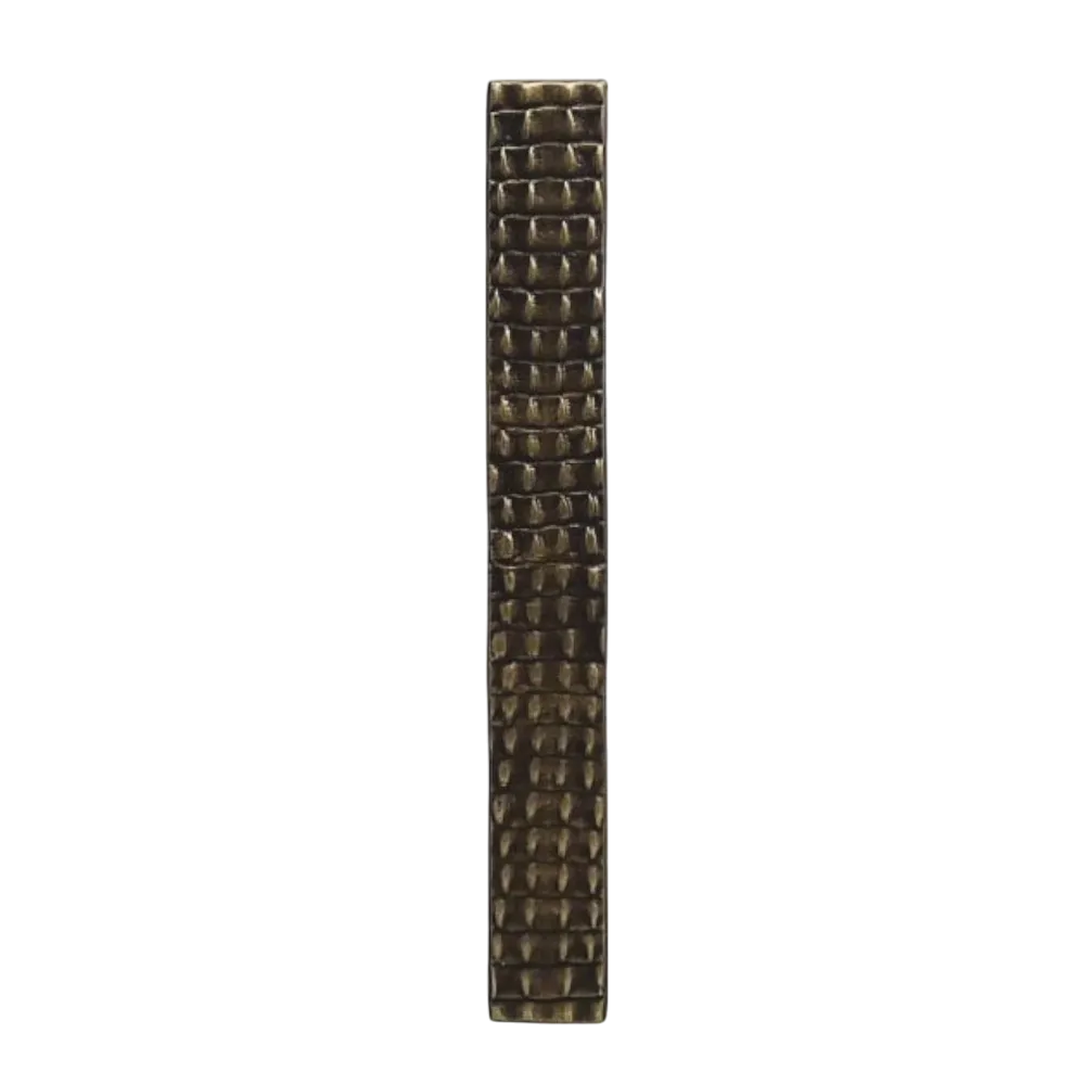 La plaque de tirage rectangle Croco 300x35 mm est un modèle en bronze de grande taille, conçu pour habiller aussi bien les portes de communication que les façades de meubles. Réalisée à partir d’un moule original créé par un sculpteur, elle reproduit fidèlement l’empreinte d’une véritable peau de crocodile.