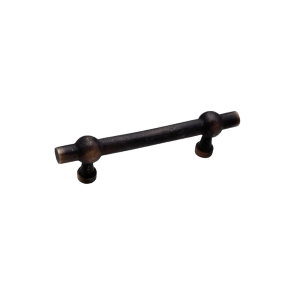 Le tirant Chemin de fer est une poignée de meuble à deux points de fixation, disponible en trois entraxes (96 mm, 128 mm et 160 mm), qui séduit par son design inspiré des poignées des wagons de train. Son barreau cylindrique épuré, associé à des pieds ornés de deux boules en bronze, lui confère un équilibre parfait entre robustesse et finesse.