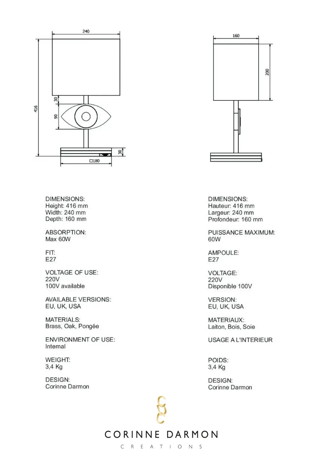 Lampe Oeil Eye Light You gun metal nickel et noir