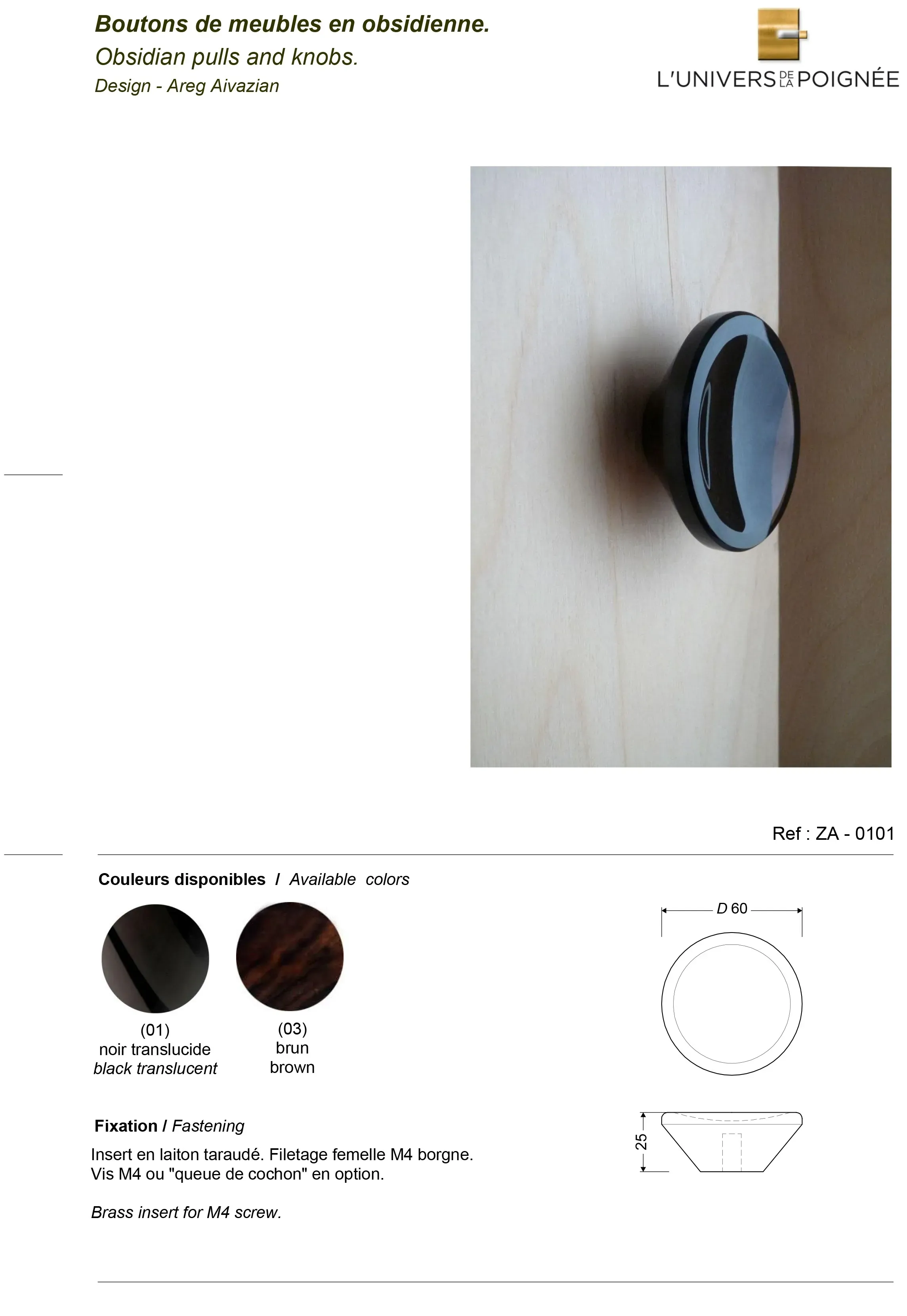 À la fois fonctionnels et décoratifs, ces boutons et tirants en Obsidienne constituent un choix distinctif pour habiller le mobilier avec une matérialité authentique et raffinée.