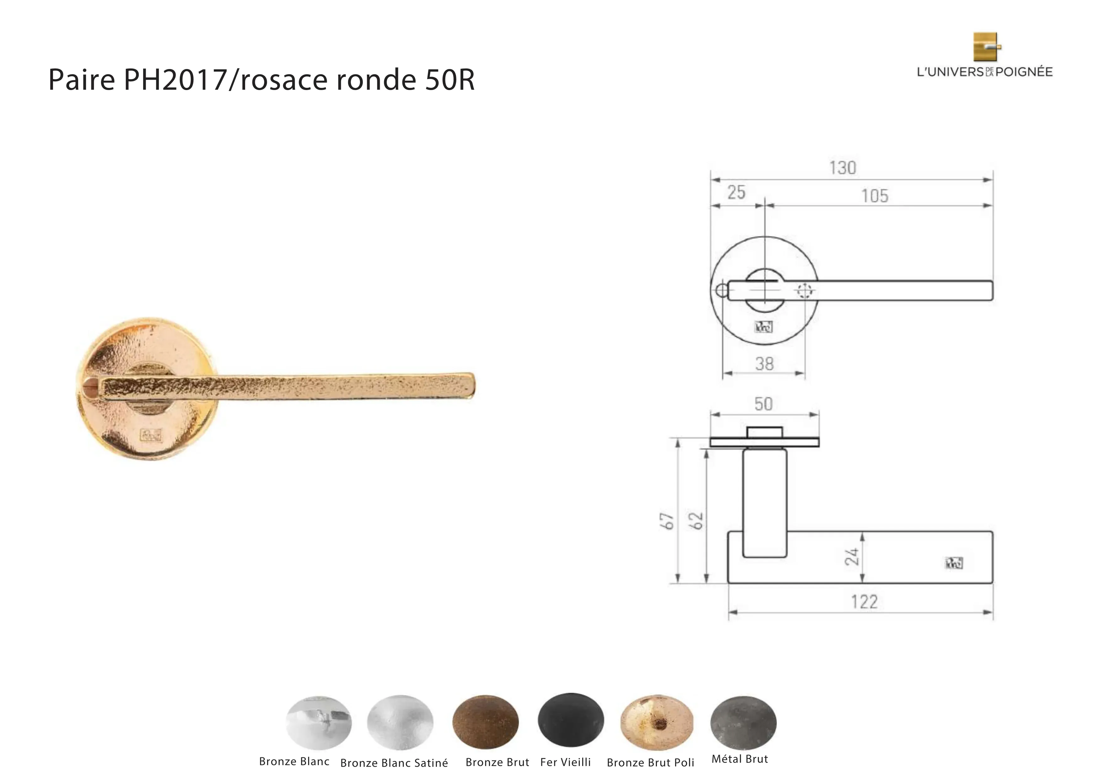 Poignée de porte PH2017 rosace ronde